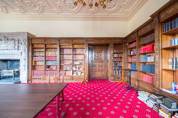 - Book-lined library