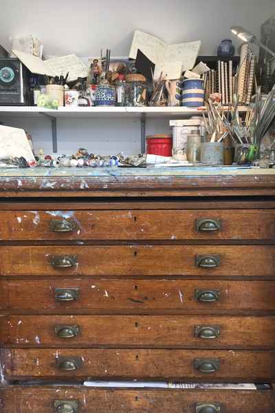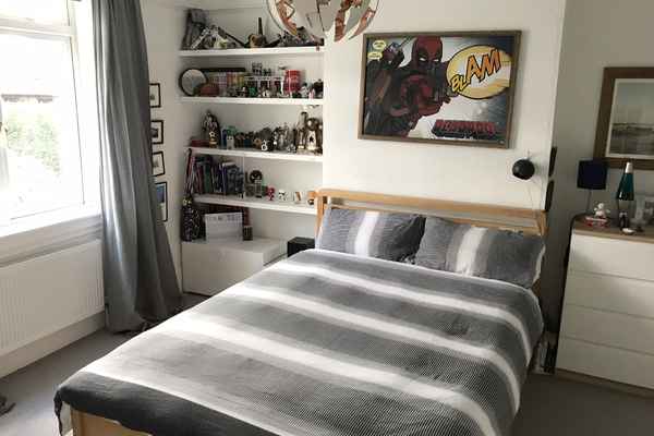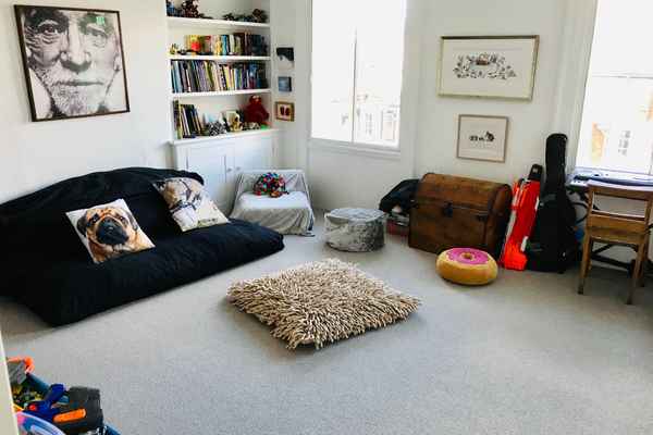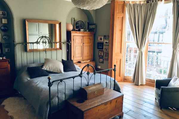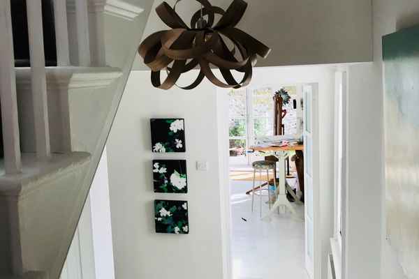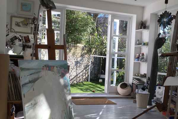 4 bedrooms, one with balcony on front of house, large children’s room with table tennis, large studio with french doors out to the garden, lounge, study with piano, kitchen with french doors on to the patio, patio and small Astro turfed garden, lots of original features with lots of paintings.