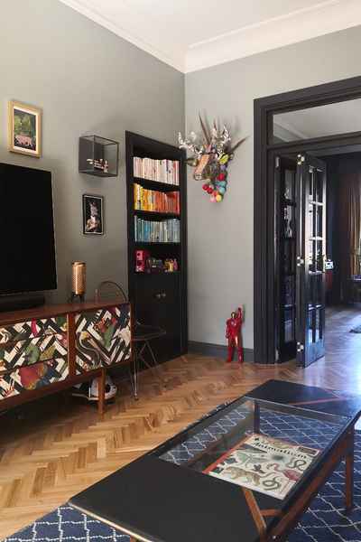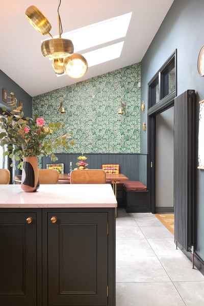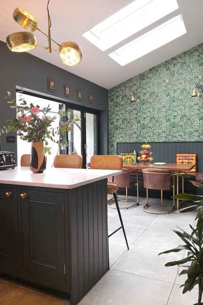 This stunning home is full of character. The home has a broken plan downstairs with a large hallway. The kitchen diner is open plan and leads through to two living spaces.Several rooms feature vibrant wallpaper and dark interiors. Gold accents are noted through-out the house and a mixture of tiles, parquet flooring and carpet. Bi-fold doors lead out into a lovely decked garden area.