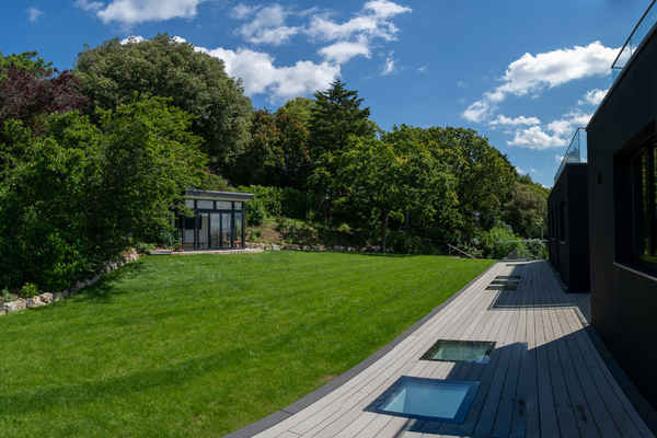 Outside is a flat roof terrace, 2 large balconies and 1 acre of gardens.