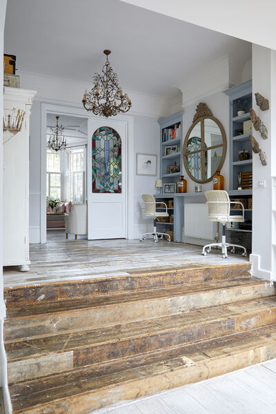 There is a live in kitchen with a big island and a gas hob. The house has high ceilings and many original features and allows for lot of light. The house is filled with useable props.