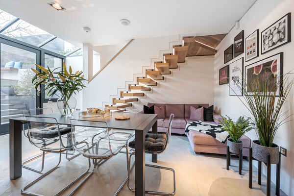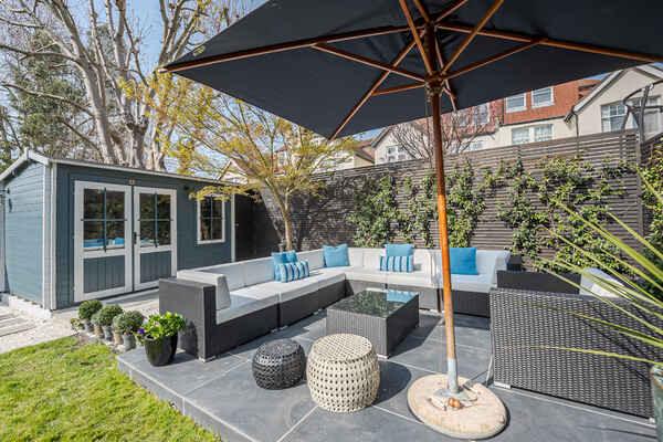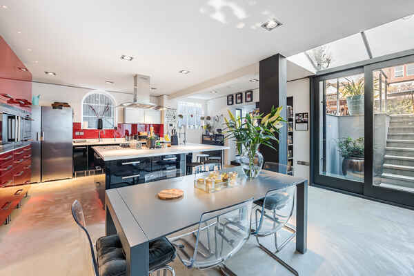 It has a fabulous bright kitchen opening up to a patio and landscaped garden.