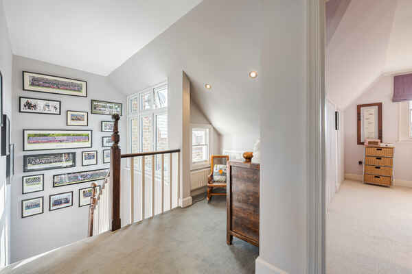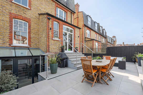 The beautifully designed house has six bedrooms, three bathrooms and a cloakroom. There is a formal drawing room and a lovely bright sitting room overlooking the garden. The garden has been recently landscaped and has outdoor seating and a shed.