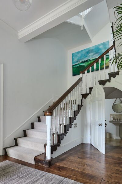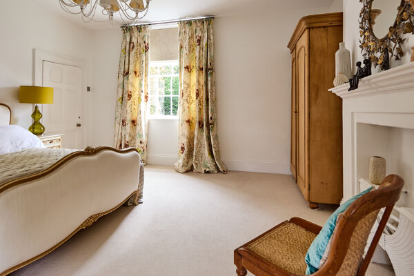 The house comprises seven bedrooms, six of which feature original fireplaces. One of the bedrooms is currently utilised as a dressing room, complete with full-length fitted wardrobes.