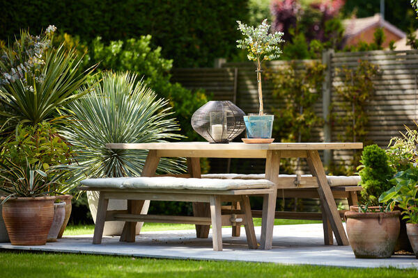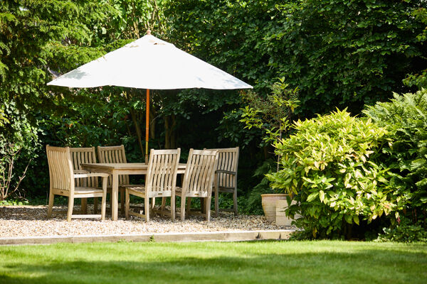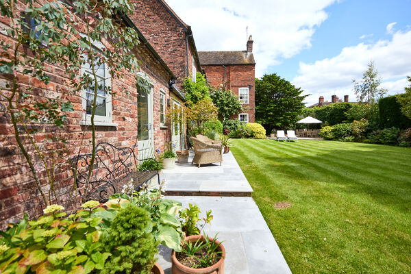The garage is equipped with a large stainless steel sink, ideal for cleaning brushes and other items. The mature gardens surround the property and besides the front garden are totally private and concealed from any public viewing by large conifers, fencing or brick walls. Each of the 3 gardens have different feel. There are four eating / relaxing areas and a large corner sofa and swing chair on the patio area. There are numerous mature plants, both in the bedding areas and in pots.