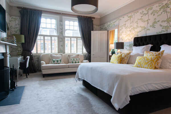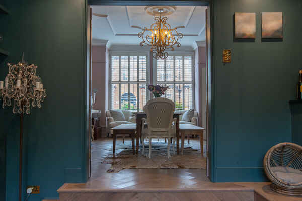 The house is super-stylish and has a stunning open plan kitchen, sitting room and formal dining room. It has 6 large double bedrooms and 4 bathroom/shower rooms. The garden is gorgeous with an outdoor table, outdoor seating and lawn.