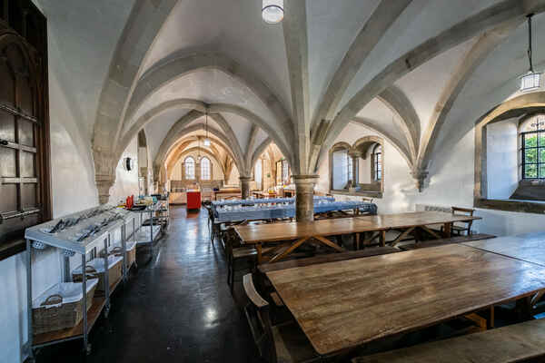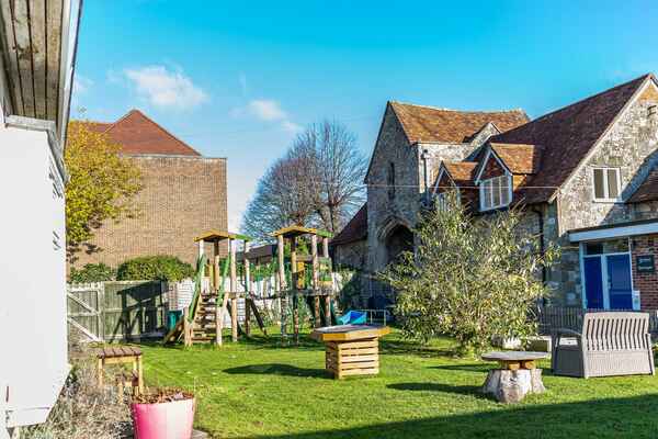 - Outside space includes all weather sports pitches, lawn, green space, a lake and a swimming pool all enclosed by a medieval stone wall