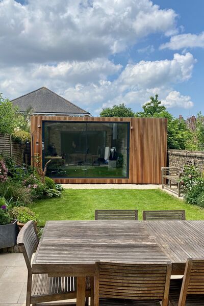 - Enclosed garden with modern cedar clad office