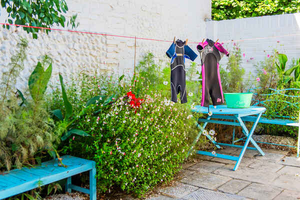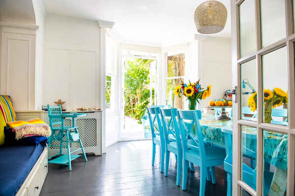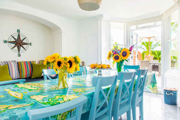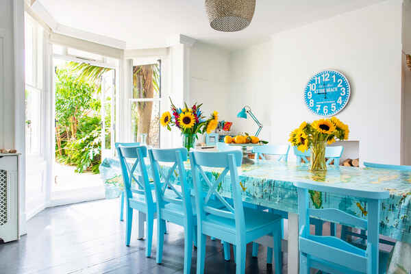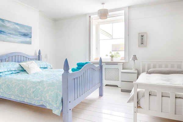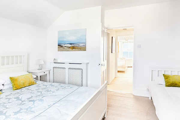 The beach is meters from the front door, perfect for coastal scenes. Coastal themed and bright interior.