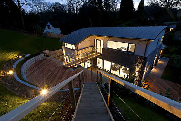 A contemporary house set over 4 floors with neutral flooring throughout , numerous large windows in every room and full length glass doors in the kitchen / living areas. The garden has been landscape for privacy and style with a bridge style walkway leading to the house. An all round minimalist and stylish home.