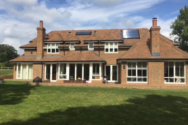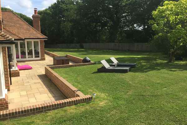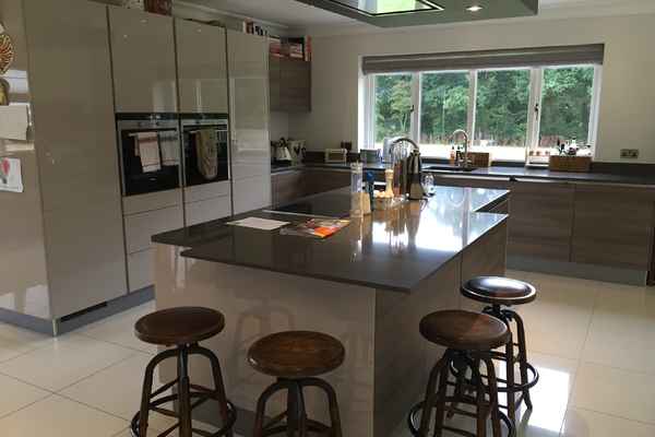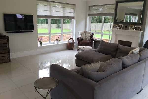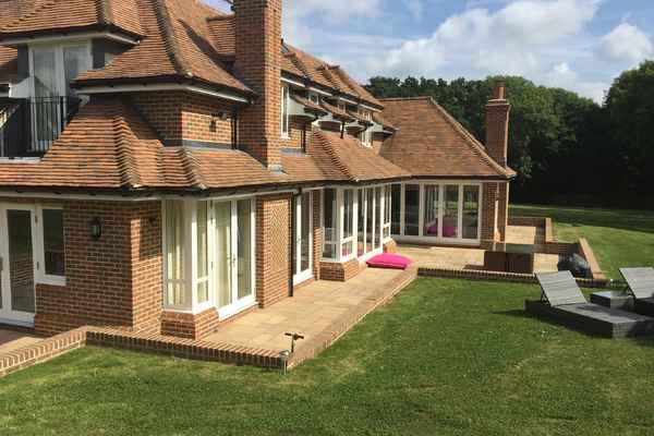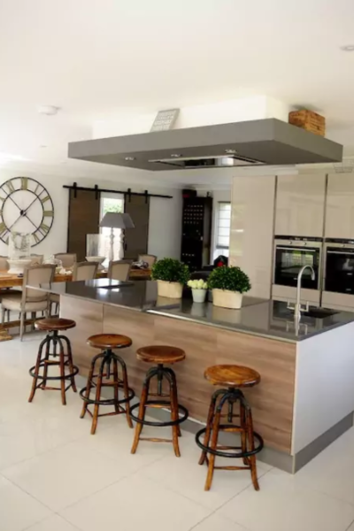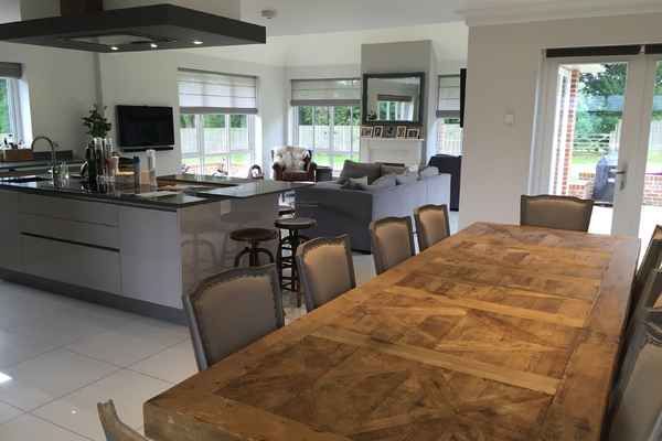 There are 5 bedrooms, 3 with ensuite's and a huge garden including heated outdoor pool. Modern kitchen dining area with plenty of seating.