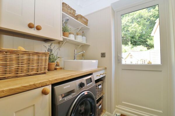There is a separate utility room in the same style as the kitchen.