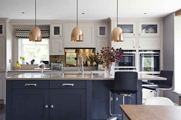 There is a modern shaker style kitchen with island and separate dining area which faces out to large garden space.