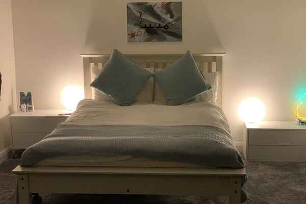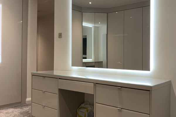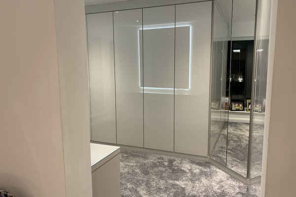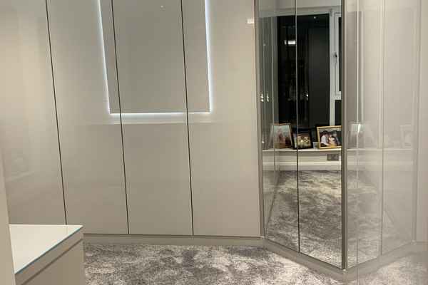 The master bedroom has a wall in dressing room attached to it.