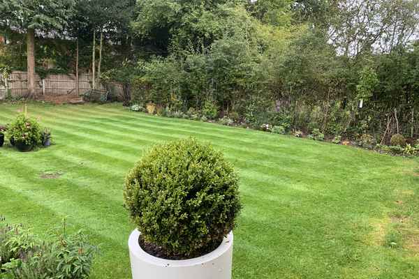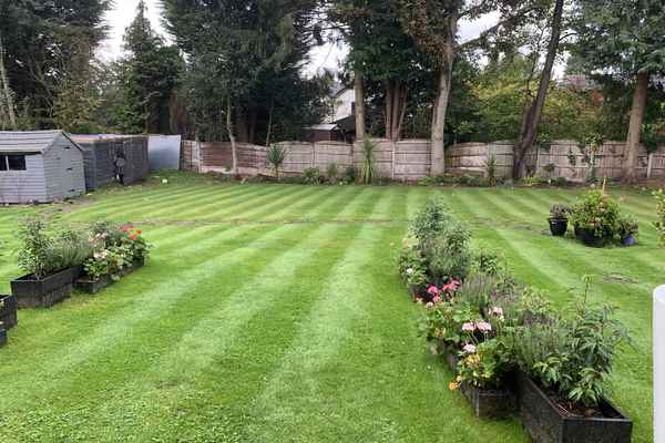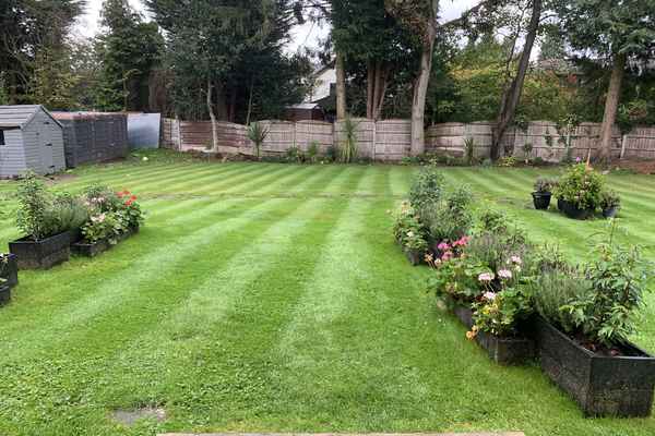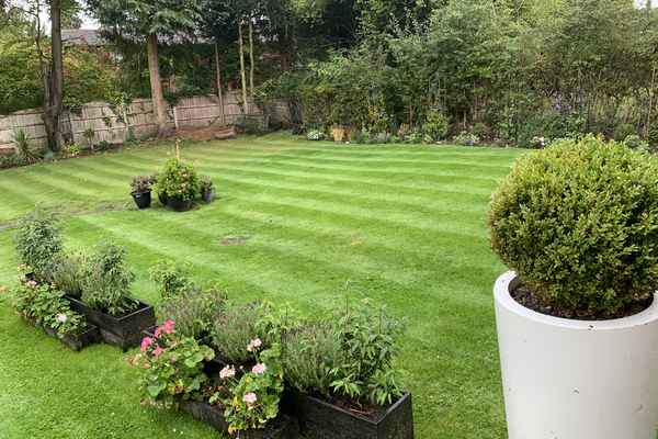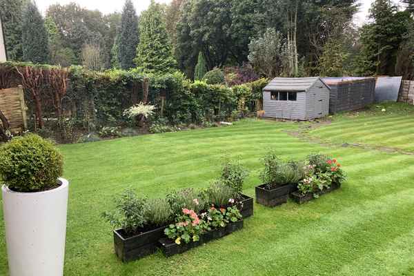 There is a balcony and a very spacious garden with rattan furniture and a firepit.