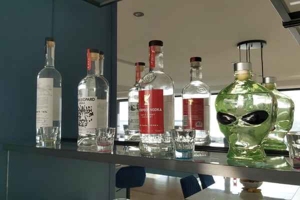 The second kitchen benefits from it's own cocktail bar area.