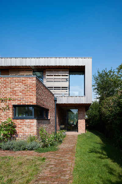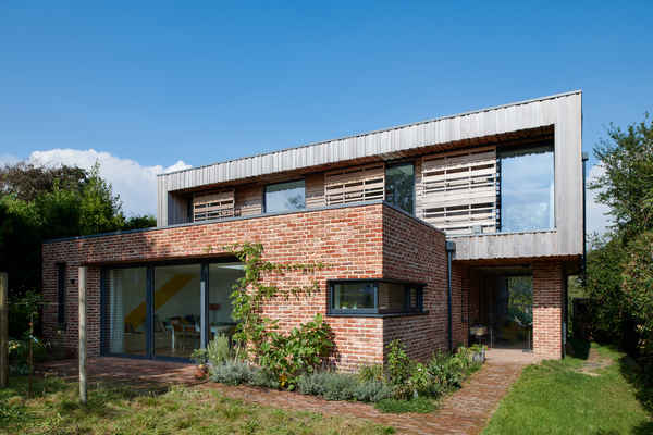 This stunning home featured flat roof design, brick and timber cladding and large floor to ceiling windows.