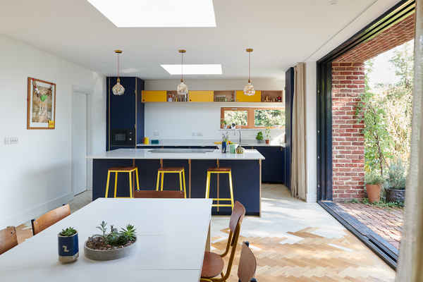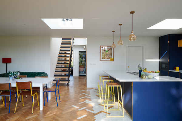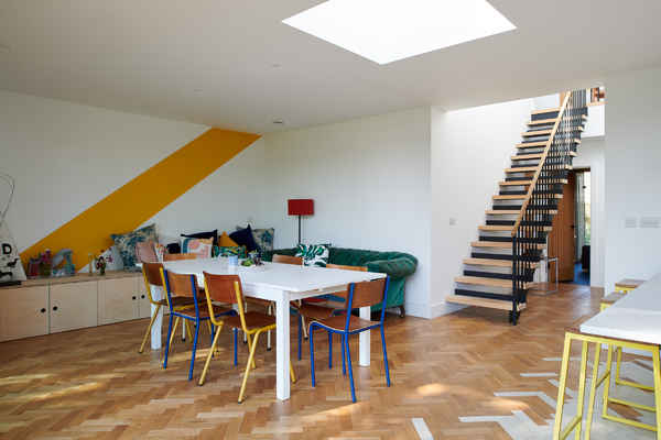 There is a large open plan kitchen living space which features a shaker style kitchen, large dining space and separate lounging area.