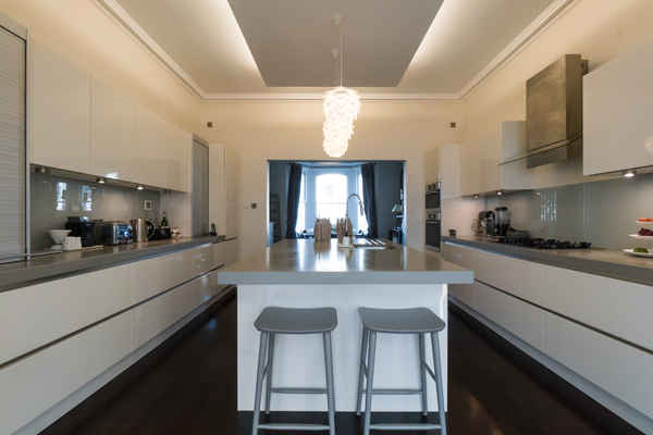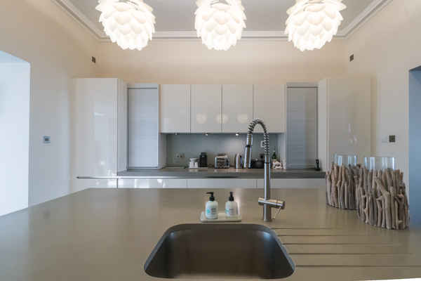 The house has retained its original features and is decorated in a soft modern palette which complements the diverse art work and mix of contemporary and traditional furniture and lighting.