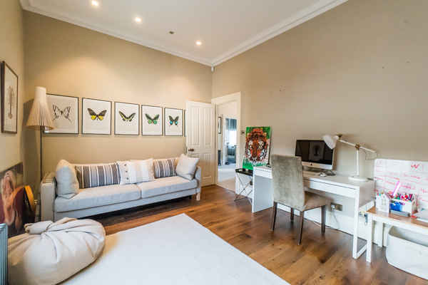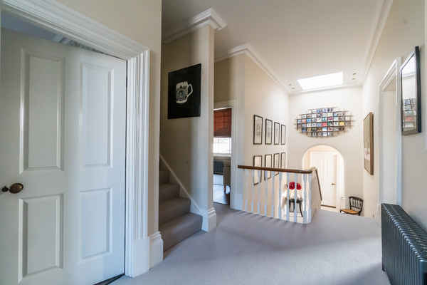 Also on the ground floor there is a large reception room split as a study and formal sitting room. French doors from the study lead into the garden.