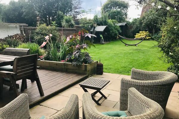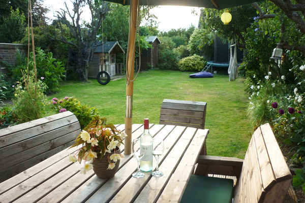 2 lounges, with a wood burning stove, large garden with trampoline, ample seating areas.