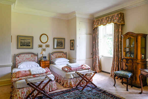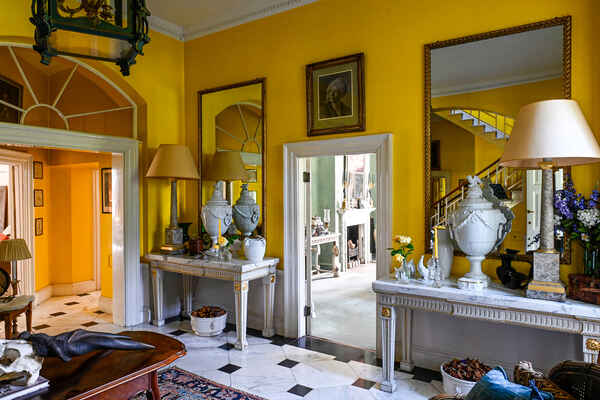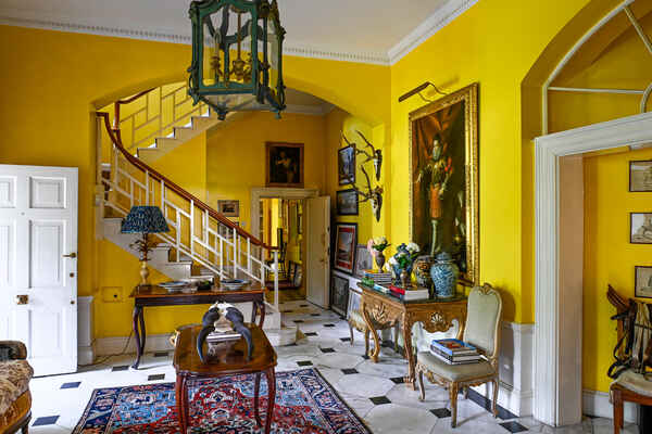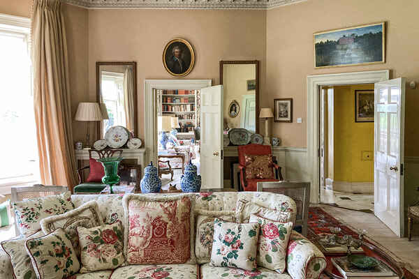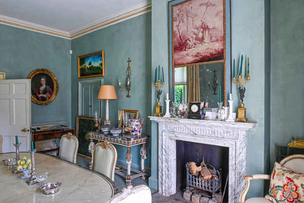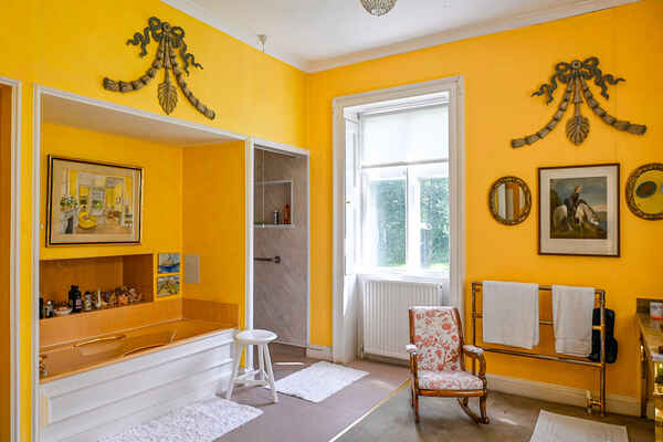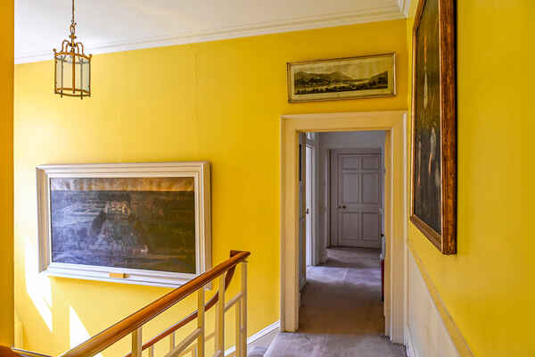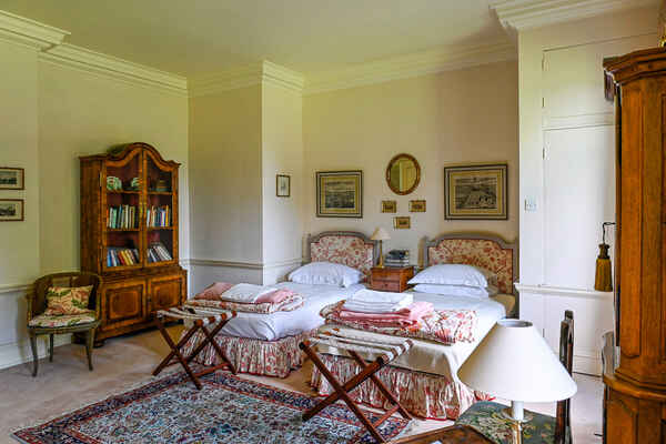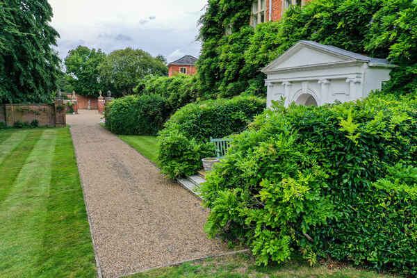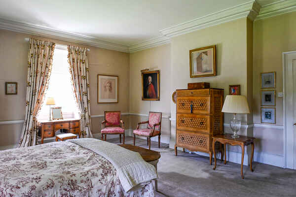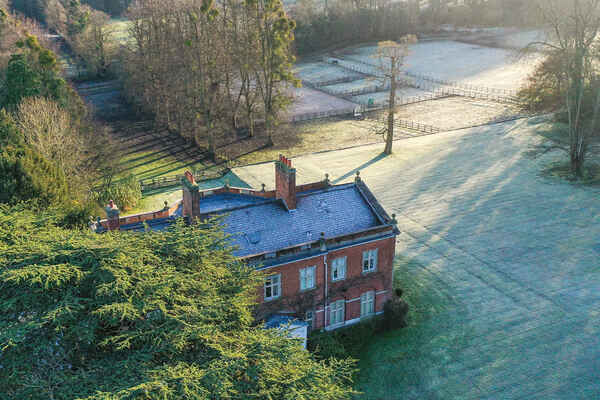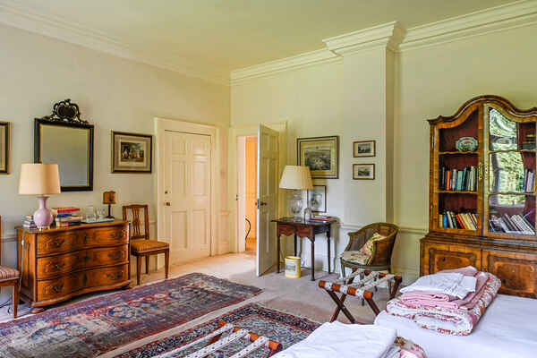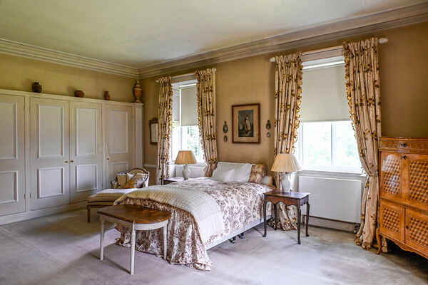 The property provides complete privacy, is walled on all sides with a haha and stone balustrade facing east allowing wonderful views over paddocks and horses, trees and over 3 acres of immaculate lawns and woods. The main house has four bedrooms, two bathrooms, an exceptional, marble-floored entrance hall with octagonal drawing room (original mid 1700’s marble fireplace and cornice) dining room and library leading from it. There is a south-facing terrace with doors from the dining room and library. A bright picture-hung corridor leads to the kitchen and back entrance. There are three flats in the adjacent outbuildings available for a variety of purposes including crew accommodation (6 people, two twin, 1 double, 1 single) Very large gravel courtyards allow for plenty of parking, much of it hidden behind high brick walls.