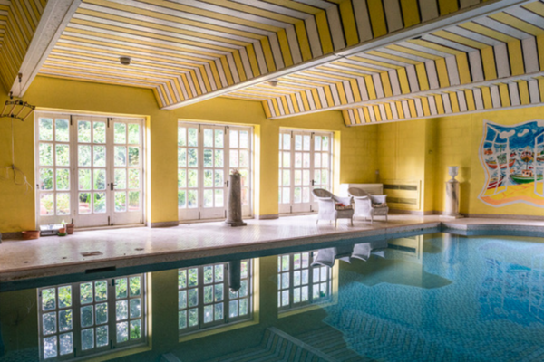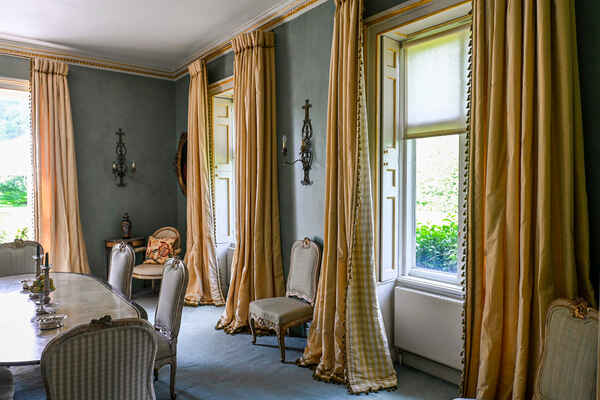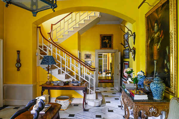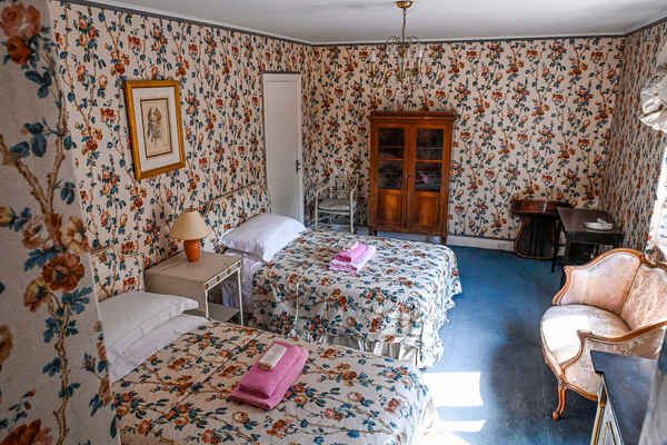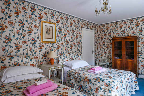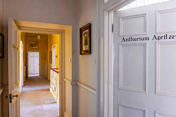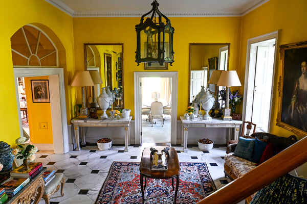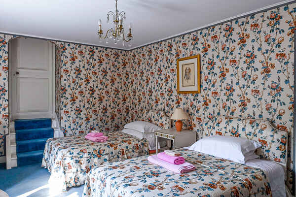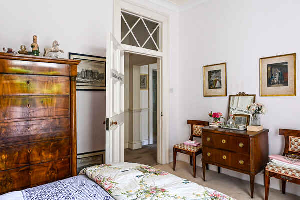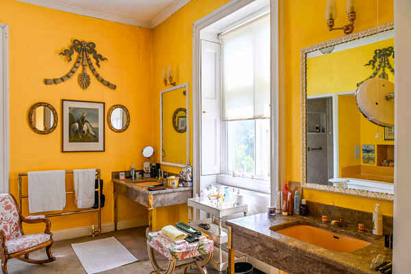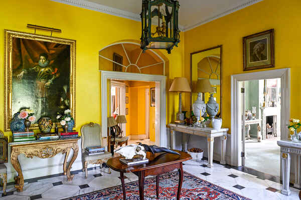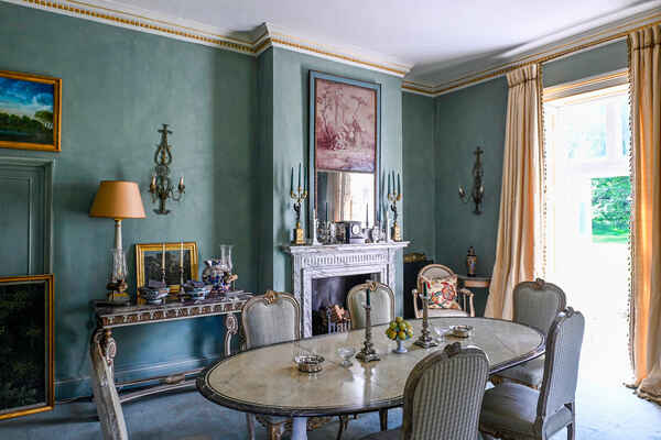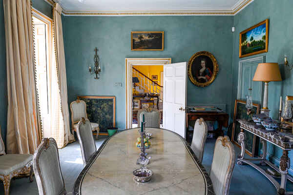 The property provides complete privacy, is walled on all sides with a haha and stone balustrade facing east allowing wonderful views over paddocks and horses, trees and over 3 acres of immaculate lawns and woods. The main house has four bedrooms, two bathrooms, an exceptional, marble-floored entrance hall with octagonal drawing room (original mid 1700’s marble fireplace and cornice) dining room and library leading from it. There is a south-facing terrace with doors from the dining room and library. A bright picture-hung corridor leads to the kitchen and back entrance. There are three flats in the adjacent outbuildings available for a variety of purposes including crew accommodation (6 people, two twin, 1 double, 1 single) Very large gravel courtyards allow for plenty of parking, much of it hidden behind high brick walls.