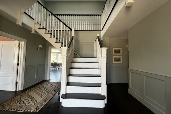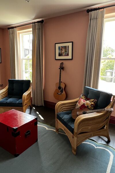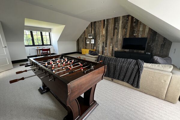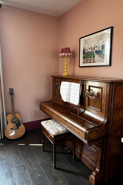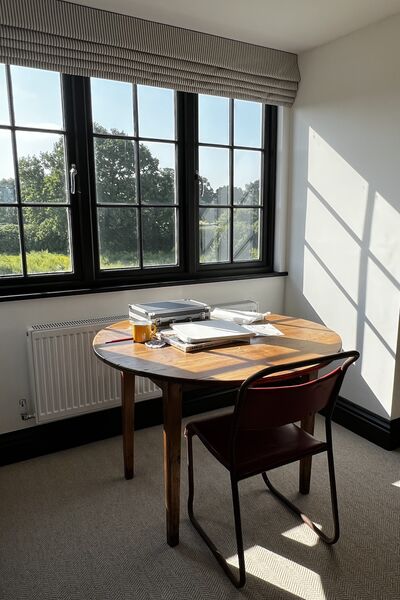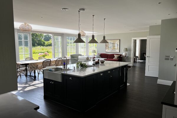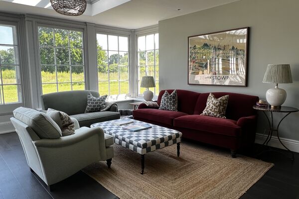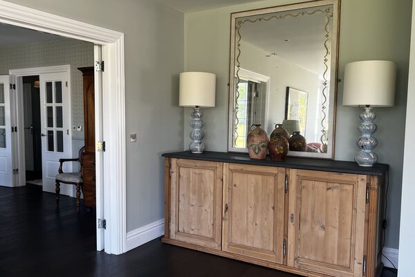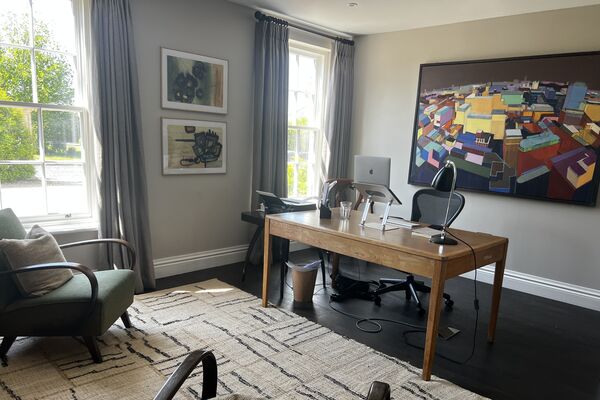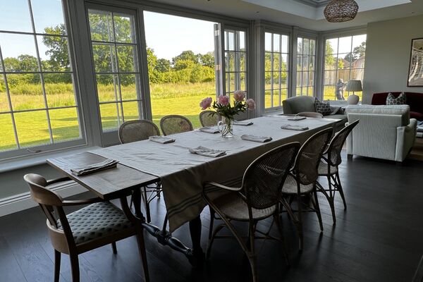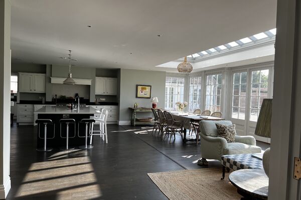 Large and bright Georgian style house with high-end interiors recently styled with mix of antique and modern plus quality art work. 3 floors including an enormous bright kitchen dining space with doors onto garden and fields beyond. 5 beds, 5 reception rooms. Large landscaped garden and 50m2 gym building.