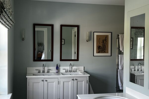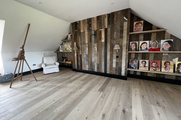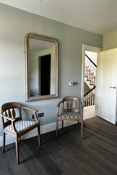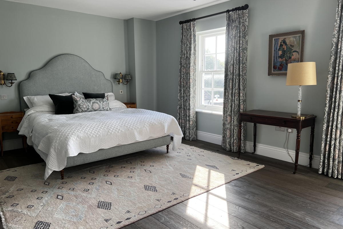 - Large master suite with antique wood floor with luxury soft furnishings.