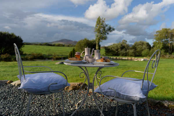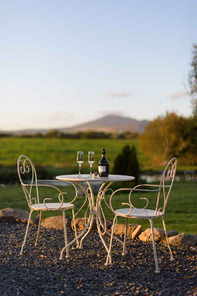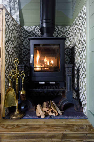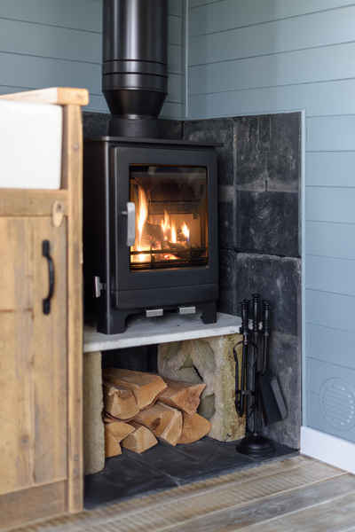 There are tables and chairs both inside and out and a wood burning stove to create a cosy intimate vibe.