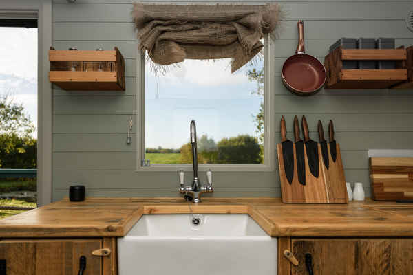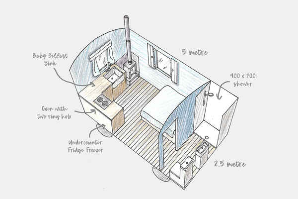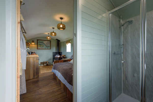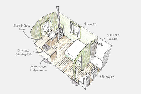 Each hut is complete with an en-suite shower room , double bed and fully fitted kitchen.