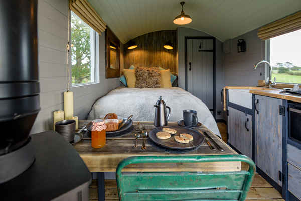 Near the border of Snowdonia National Park in North Wales, Brook Cottage Shepherd Huts offers a quiet rural retreat in an Area of Outstanding Natural Beauty with uninterrupted far-reaching views to the mountains.