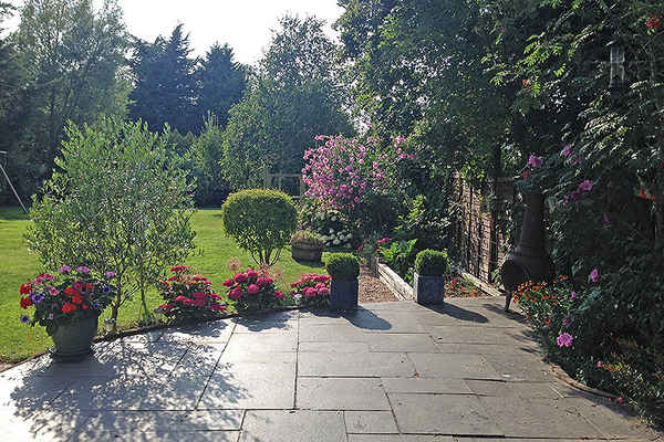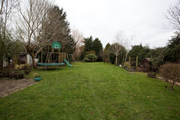 The garden is very large and private with a beautiful lawn and mature trees at the bottom.