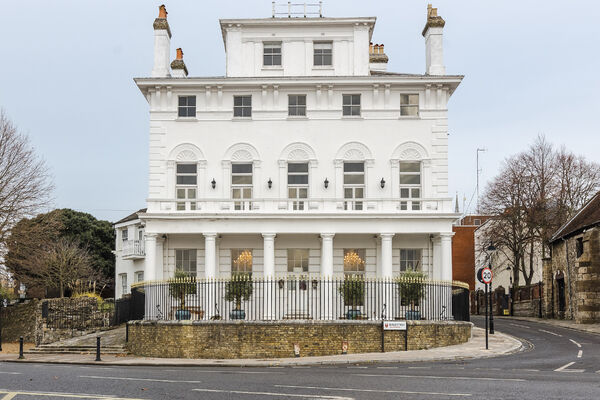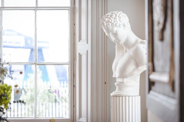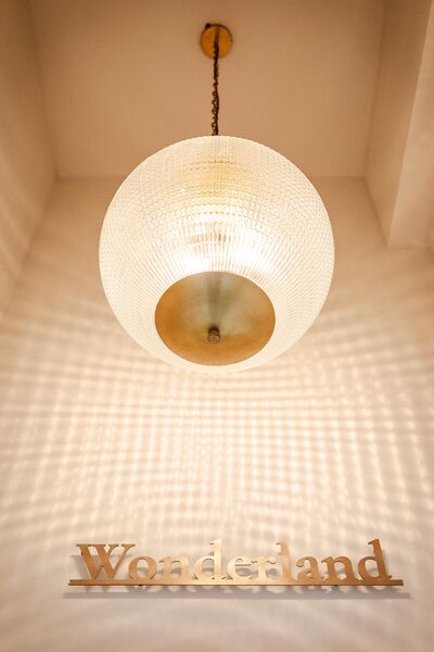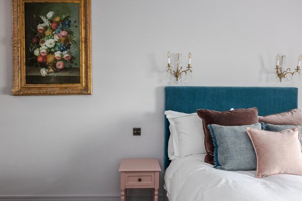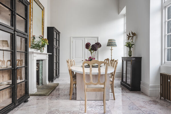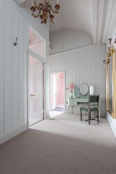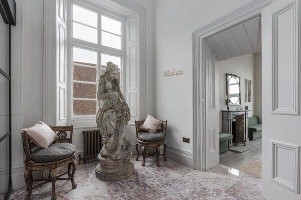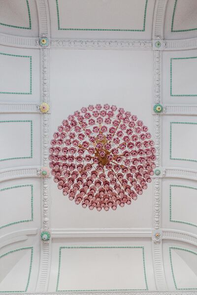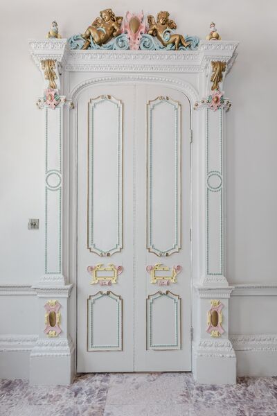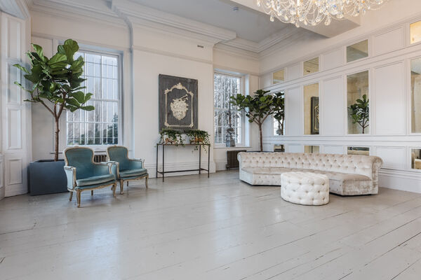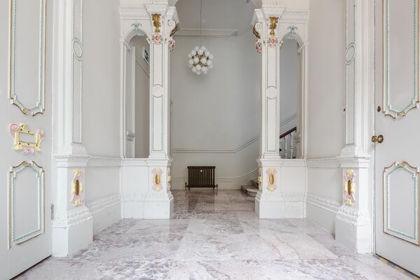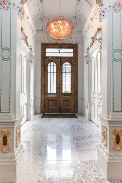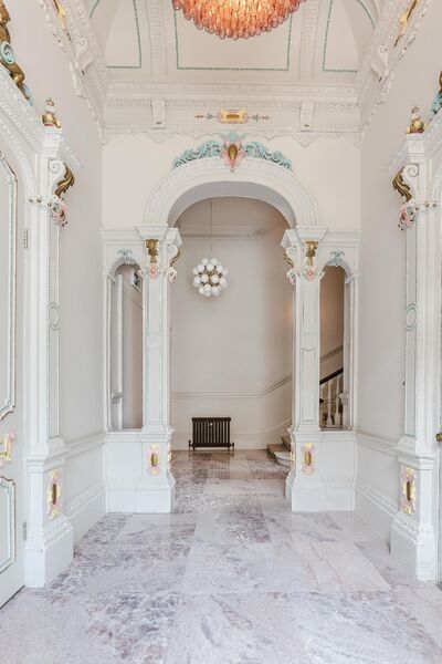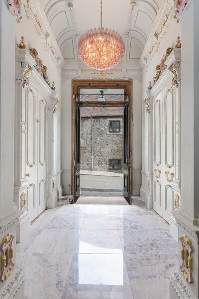 Enter via the dusky marble hall, below beautiful hand painted plasterwork in pastel shades, and a stunning pink chandelier. Go through the looking glass and find yourself in