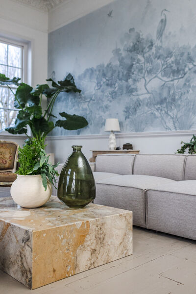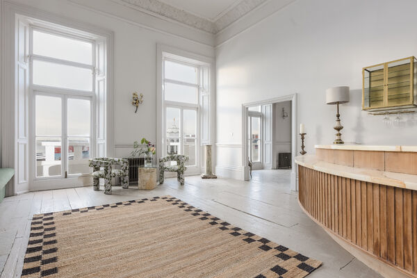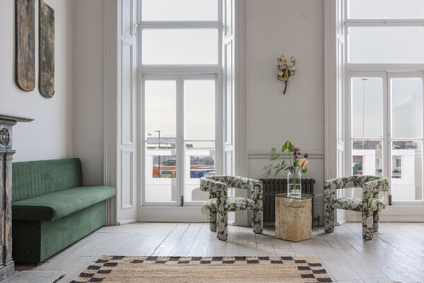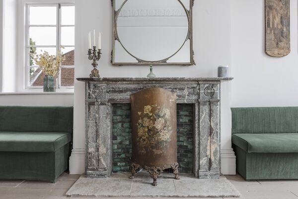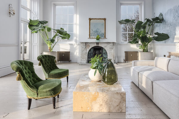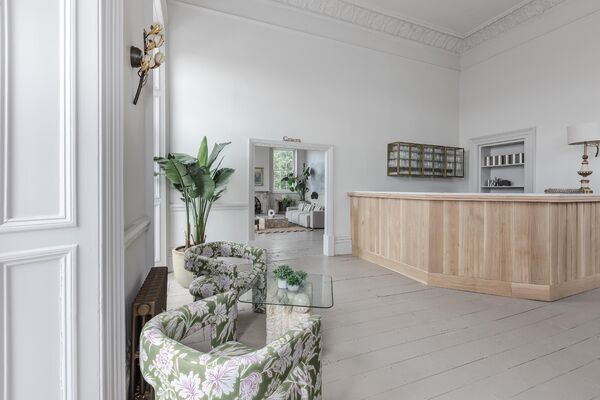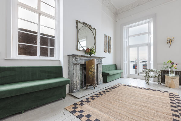 airy and fantastically light, Graces has three huge floor to ceiling windows, a beautiful muted Heron mural adorns one wall and giant Alocasia plants flank an original open fireplace.