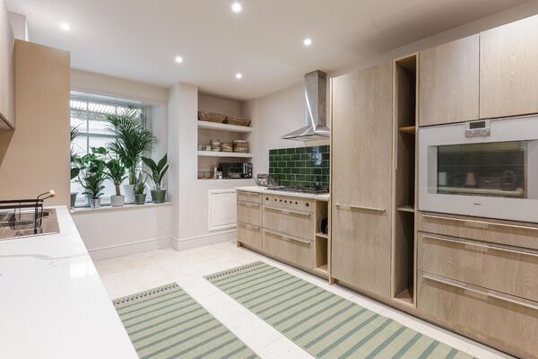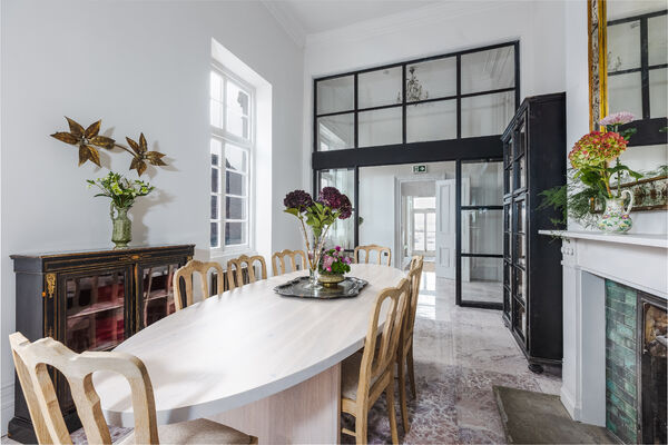 are three further reception rooms. Reverie is an intimate dining room with an oval dining table that can seat up to 12, beautiful cabinetry and an antique French mirror above an open
