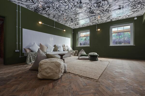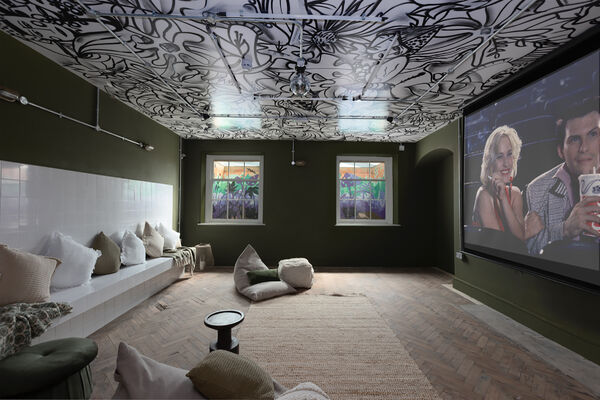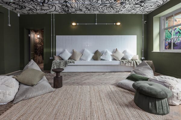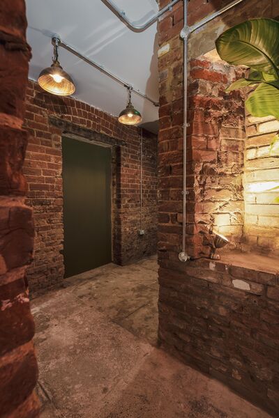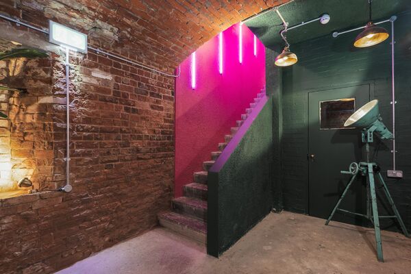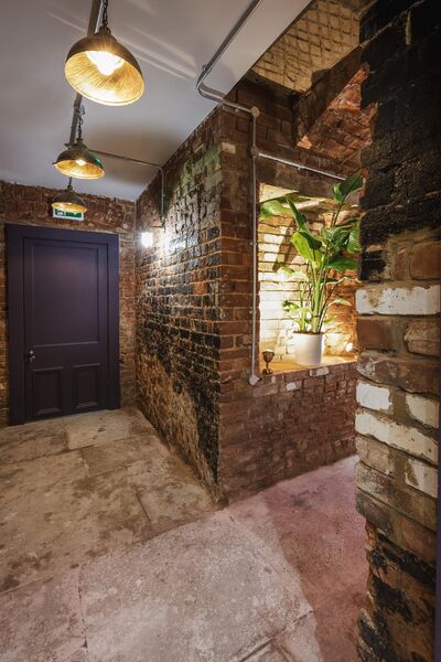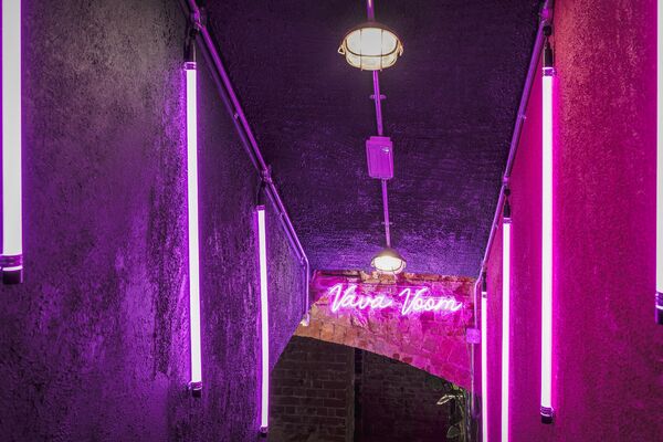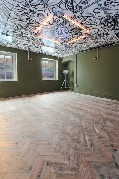 which is decked out with neon lights and a monochrome graffitied ceiling. There is also a fully equipped domestic kitchen and a commercial kitchen.
