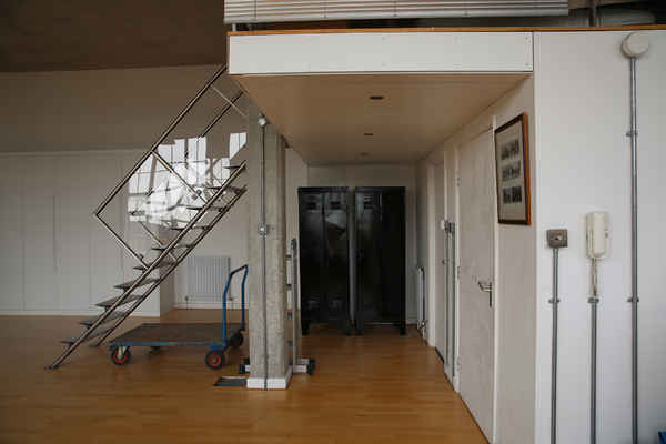 A steel staircase gives access to the one bedroom which is open plan and provides a gallery view of the living space below.