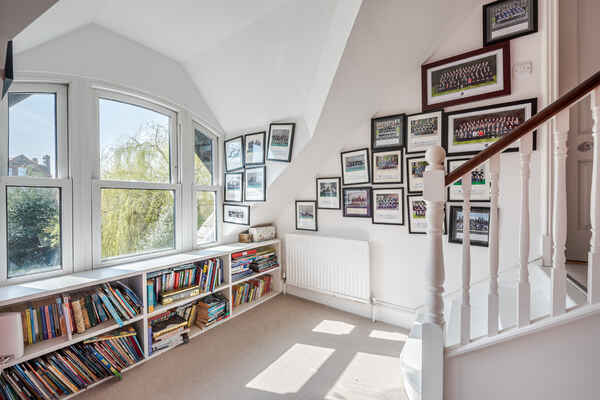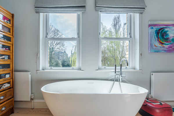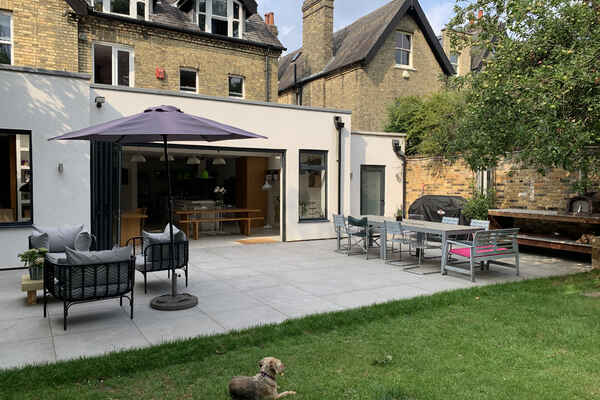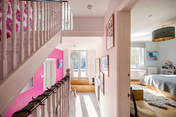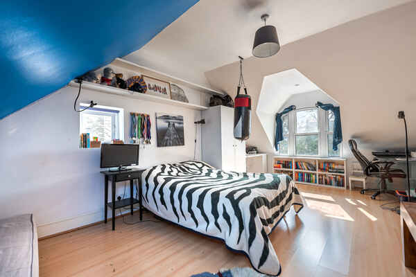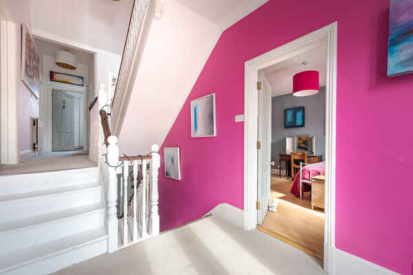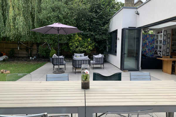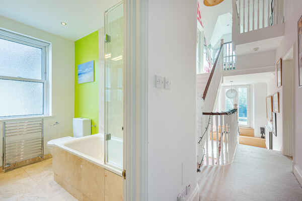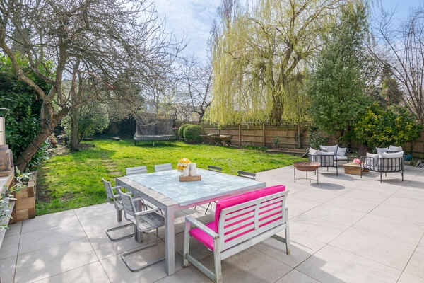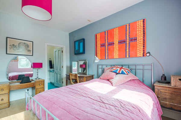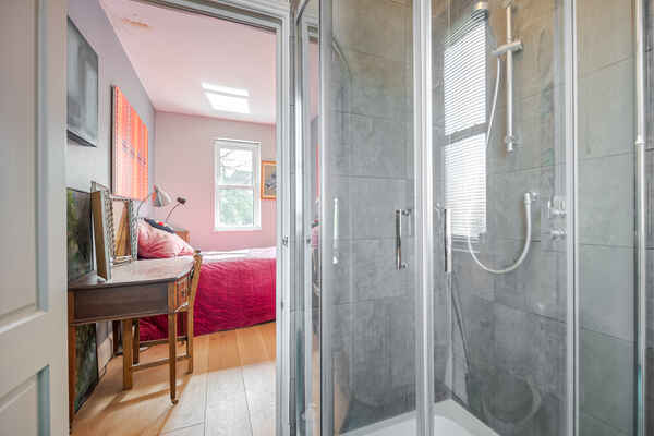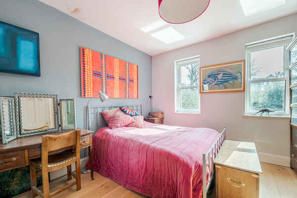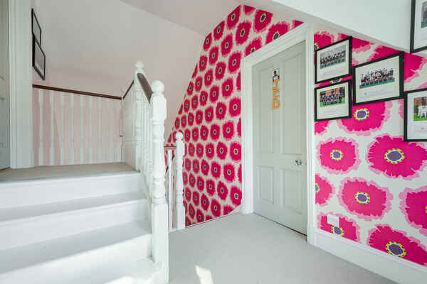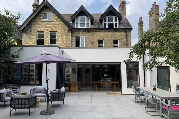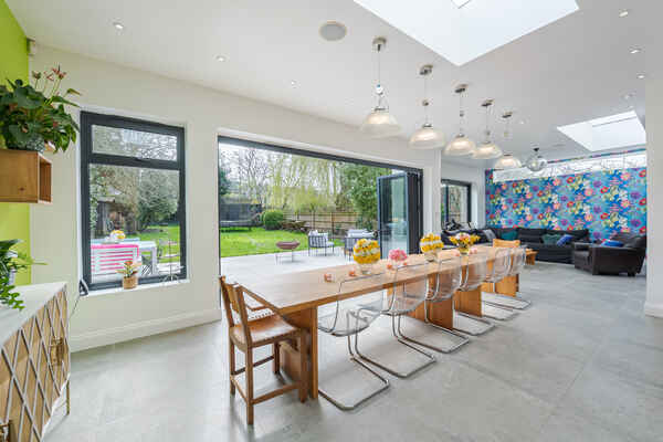 A huge family home in Streatham. It has a beautiful double width kitchen and dining room. The house has brightly coloured walls and wallpaper and has 6 bedrooms, 1 family bathroom and 3 ensuite showers. It has a fantastic garden with outdoor seating, patio and pizza oven.