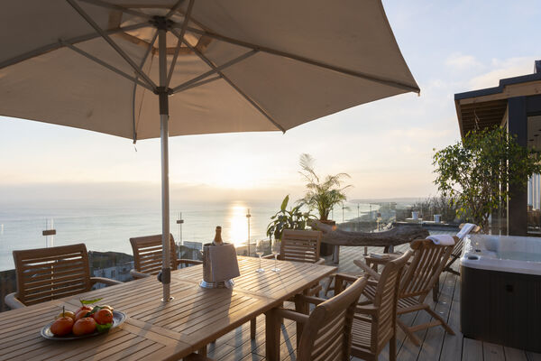 - Outside decking with hot tub and sea views