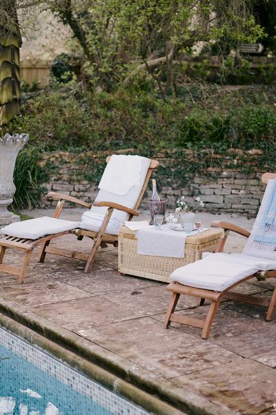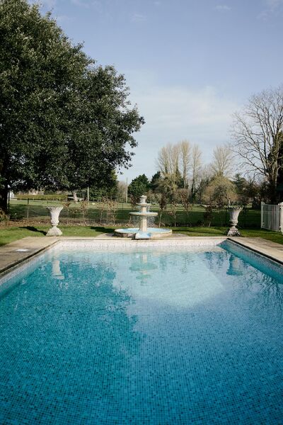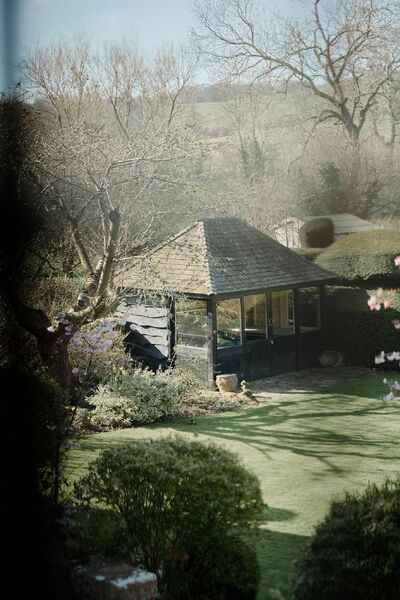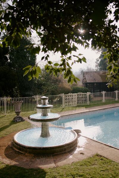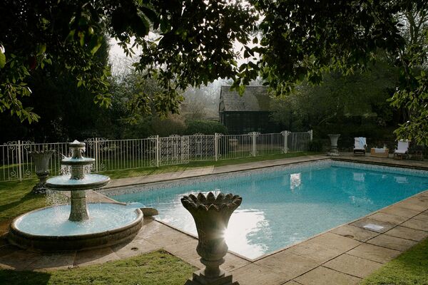 Exterior: Outdoor swimming pool Herb garden Stream Heritage Topiary Gravel pathways cross the English country garden Orchard Cedar shingled summerhouse Greenhouse Croquet lawn