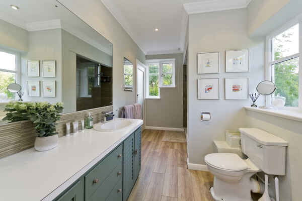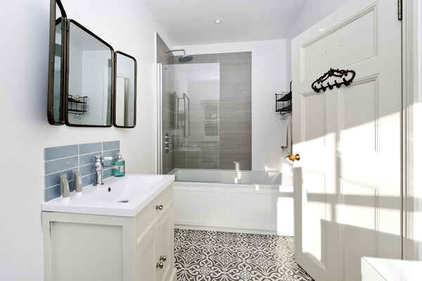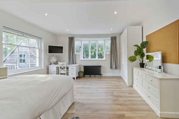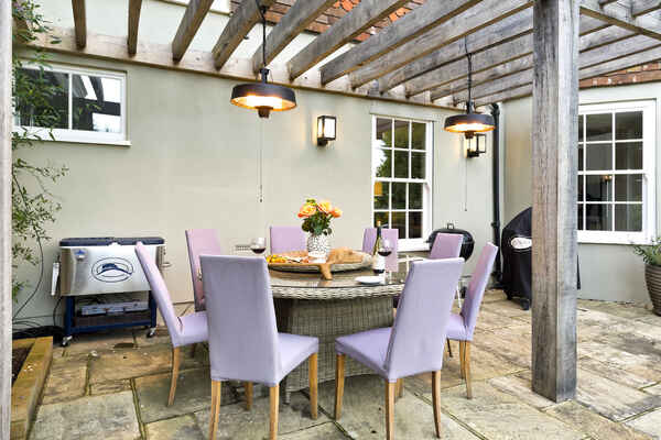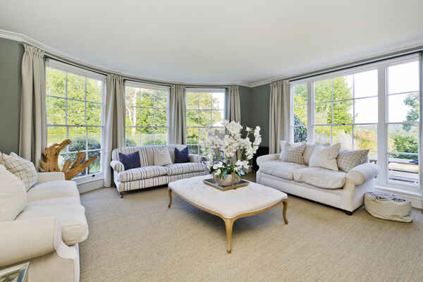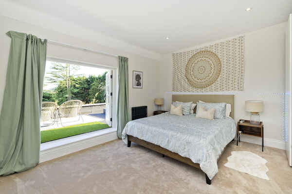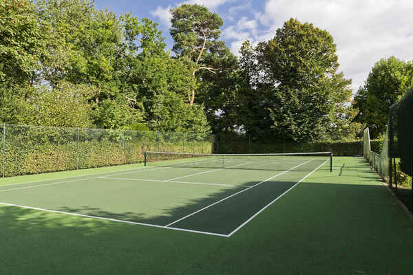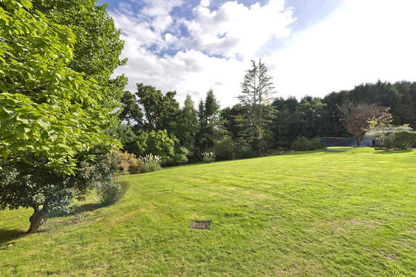 Found at the end of a private, sweeping drive in 3.5acres of formal gardens. It has a huge open plan kitchen/dining/living room, six bedroom suites, a tennis court, heated pool, fire pits, a barbecue cabin, an extra large enclosed trampoline and a croquet lawn.