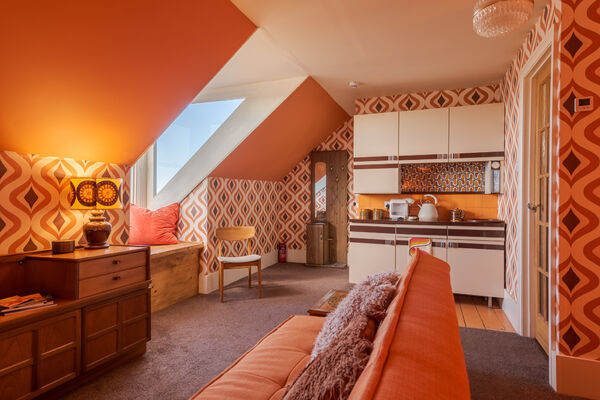 Every room is a delight – beautifully created with amazing pieces, wallpaper, chairs, and ornaments. The loft is an extraordinary 1970’s apartment. It has 5 bedrooms, 3 bathrooms and 4 other toilets. It has one kitchen, patio garden, 2 x living rooms. It has an enclosed flat and an Airbnb in the loft for accommodation if needed.