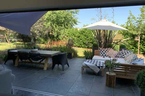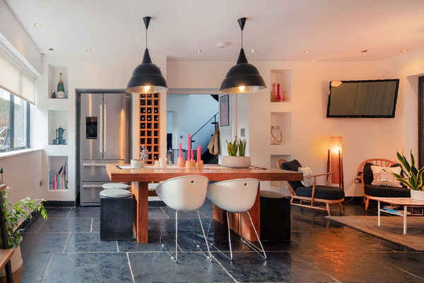 The property houses 5 bedrooms + a bedroom in a garden ceda cladding cabin.
