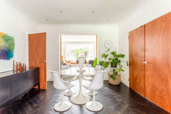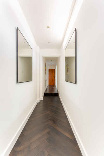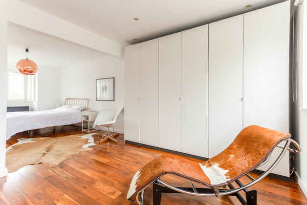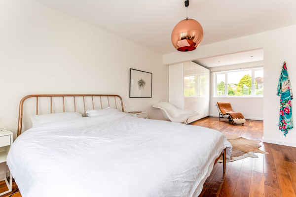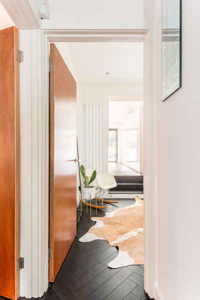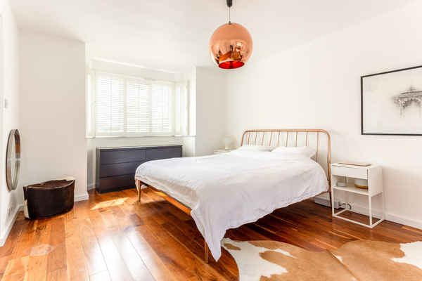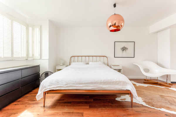 A light and bright space through-out with wooden floors and copper accents.