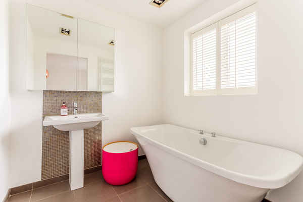 Upstairs is are double bedrooms and a beautiful bathroom with free standing tub.