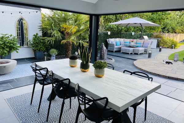 Leading out from the kitchen/diner is a large garden perfect for outdoor location shoots thanks to it's many entertaining and seating areas which include a fire pit, cosy seating area and second corner dining area . There is also a built on barbecue station.