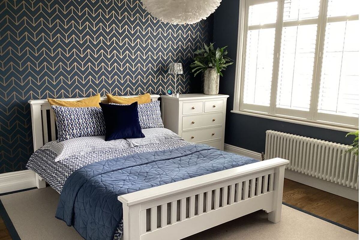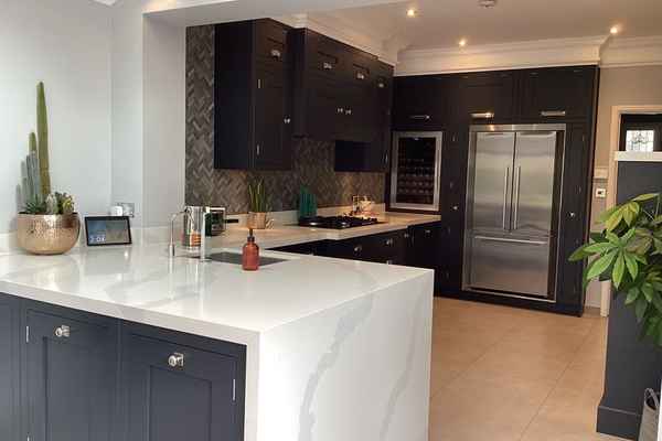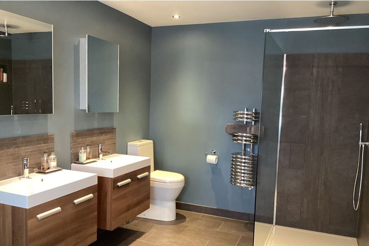 The kitchen is hand painted and has marble worktops.