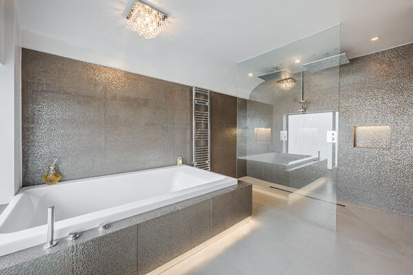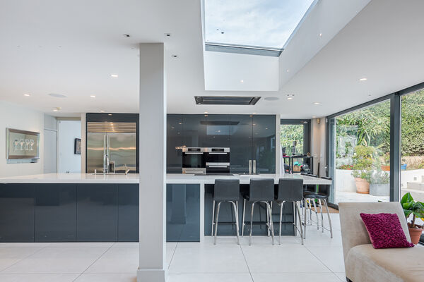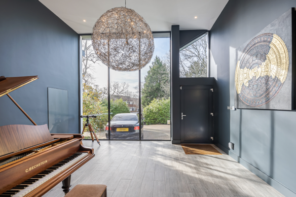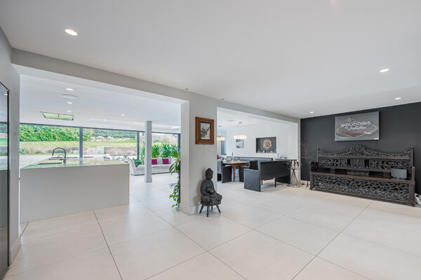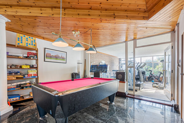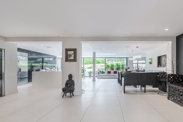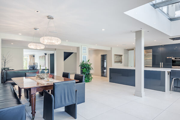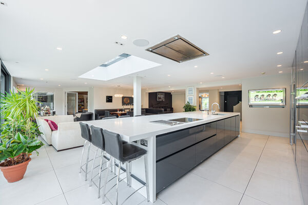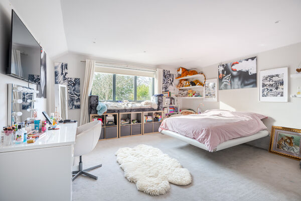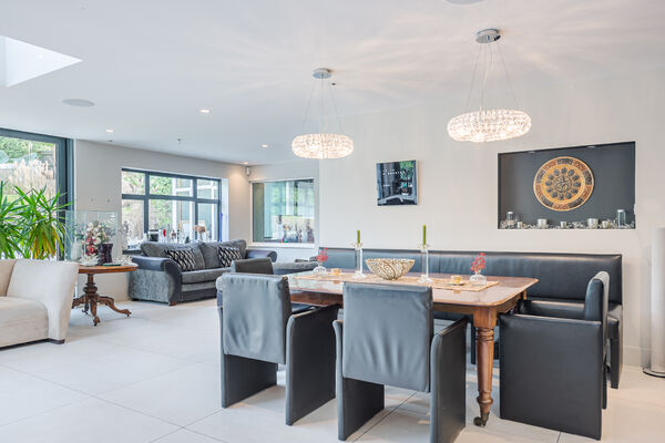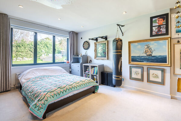 This five bedroom home features a large open plan kitchen and living space, a games room, cloak room and walk in dressing room.