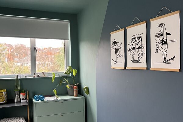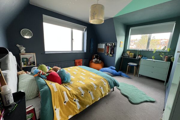 The 3 bedrooms and a box room upstairs all feature bright pops of colour and design. Each bedroom is a double and most rooms feature quirky ceiling shapes. This house is positioned directly opposite and overlooking St Helens Green, a very large grassed open space with lots trees. It is south facing and gets lots of sunshine.
